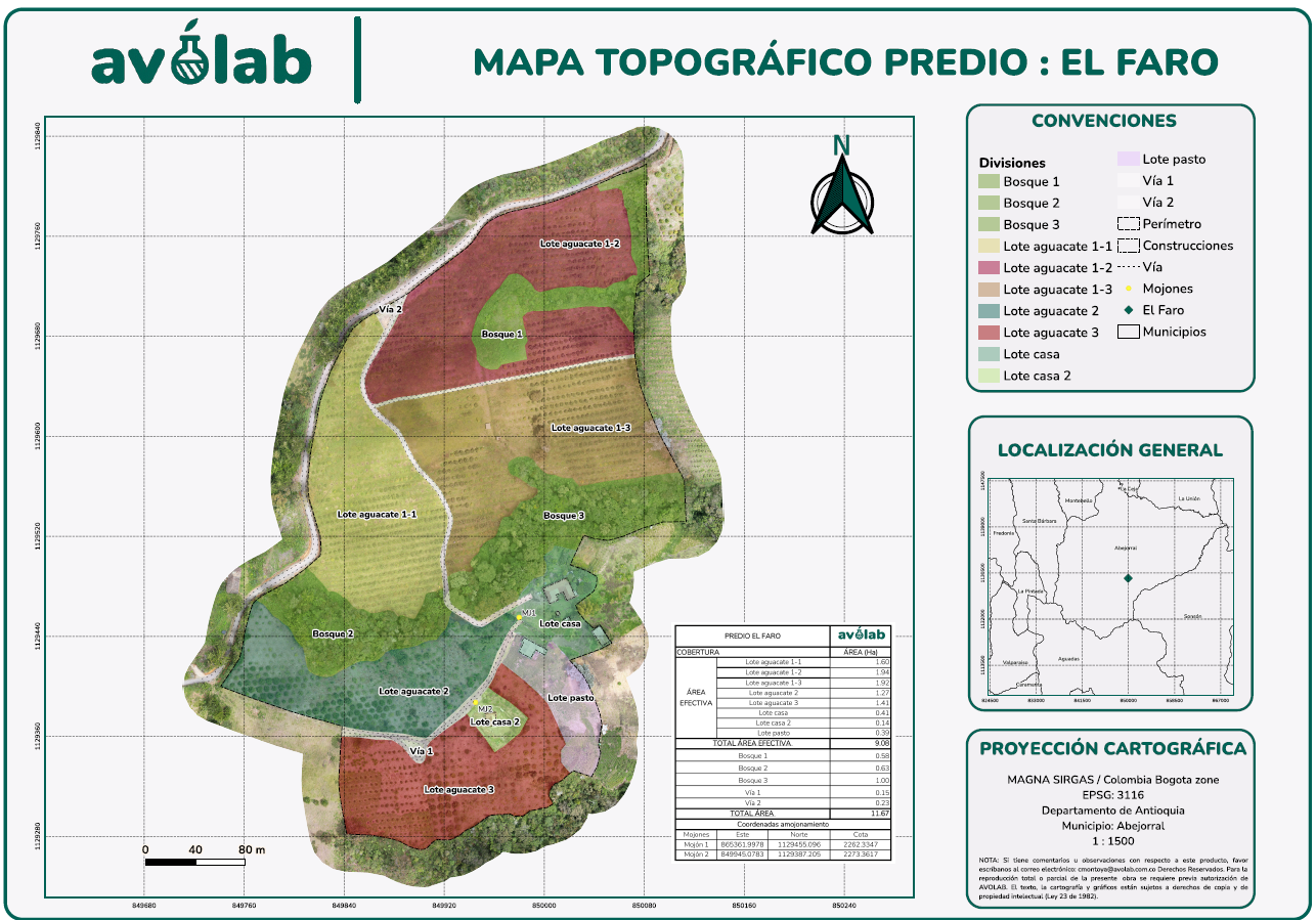La finca llamada "El Faro", situada en Abejorral, Antioquia, es un paraíso natural dedicado a la producción de aguacate Hass, Gulupa y Lulo. Esta propiedad se extiende por amplias extensiones de terreno ondulado, donde las plantaciones de aguacate se despliegan con elegancia bajo un cielo claro. Los árboles de aguacate, con sus hojas verdes y brillantes, dan frutos de excelente calidad que son bien conocidos en la región por su textura suave y sabor delicioso siendo este nuestro fruto Insignia, Nuestro fruto ENCANTADO.